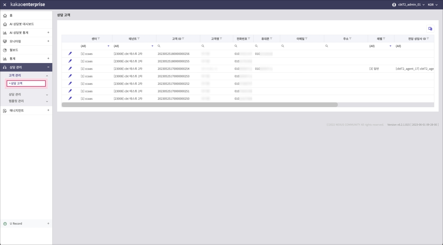 상담사가 등록한 고객 목록을 삭제/변경하거나 관리자가 상담고객을 생성할 수 있습니다.